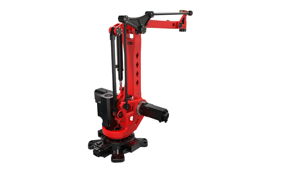 Конфигурация робота отличается простотой, надежностью и высокой скоростью цикла. Управление осуществляется за счет точной координации двигателей и редукторов, что позволяет выполнять быстрые вертикальные и горизонтальные перемещения, а также вращение захватного устройства. Упрощенная кинематика снижает затраты на техническое обслуживание.