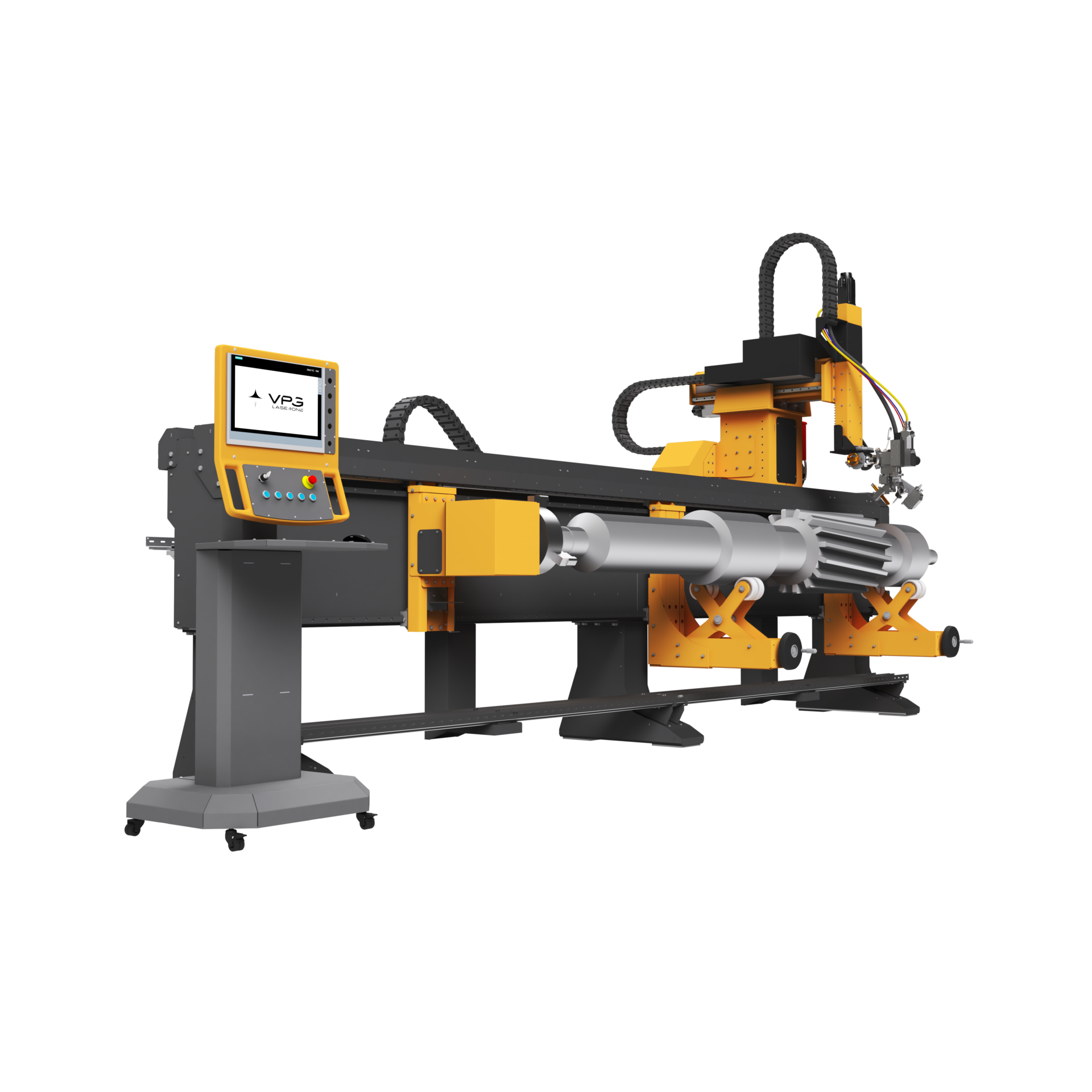 - Фирменная стойка управления с промышленным дисплеем, сенсорной панелью и мобильным пультом