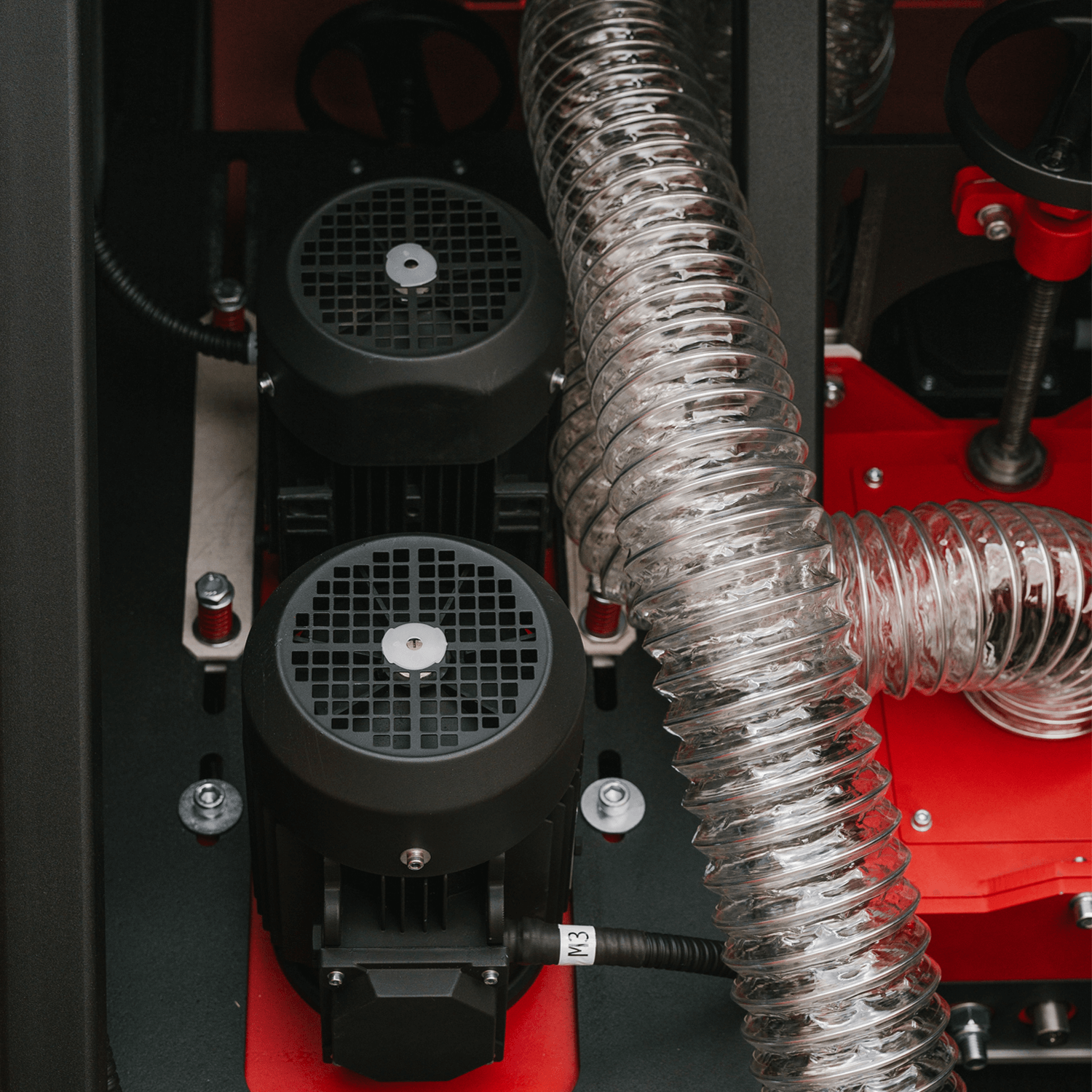 - Выходы для подключения аспирационной системы (рекомендуются модели мощностью 3000 м3/ч, например S-4000) позволяют снизить запылённость на рабочем месте и, тем самым, улучшить условия труда.